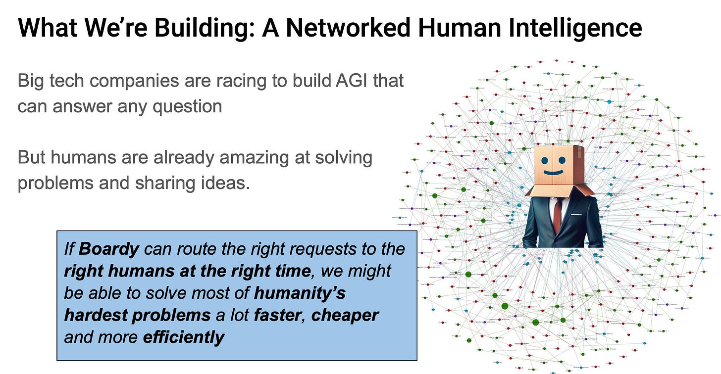 Boardy is basically an (AI) superconector - you have a phone conversation with a remarkably lifelike conversation partner who asks about your career, plans and things you’re working on, then goes off and offers up potential intros (double opt-in) to people who may be a fit.