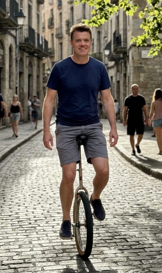 A useful tool to make images and video of AI people, or indeed of real people. It uses Google’s AI back end but is more usable and designed to help with eg marketing campaigns. Here’s one of me fulfilling my long ambition to ride a unicycle…