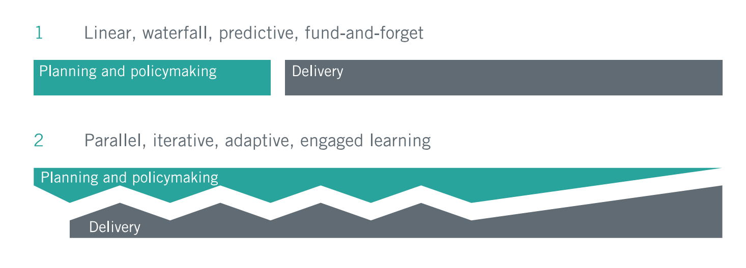 A particularly useful idea is a ‘delivery-driven policy process’ by which rather than doing planning —> implementing, there’s an iterative approach, echoing the lessons learned in startup development: